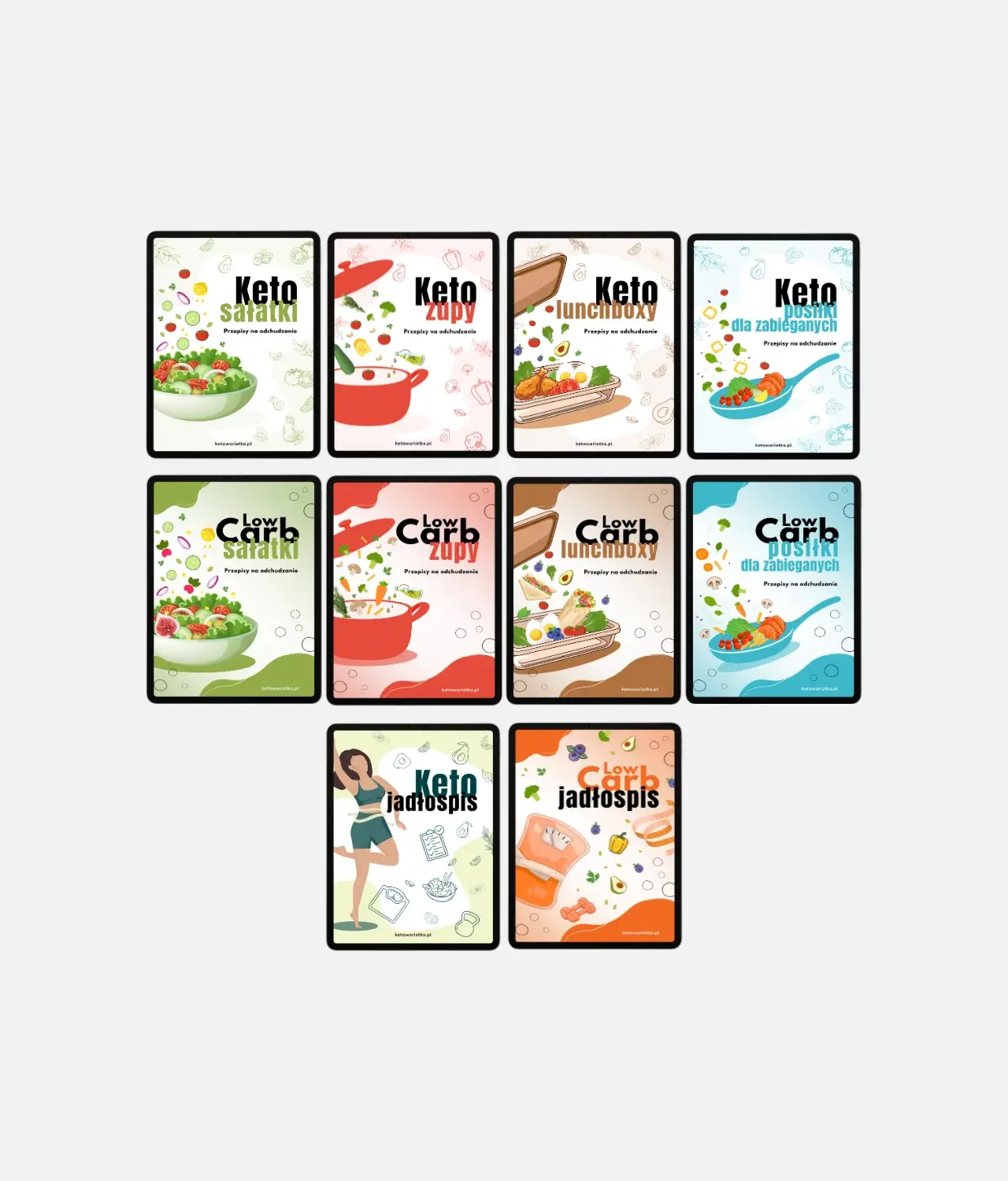 Otrzymasz pakiet 8 e-booków z szybkimi przepisami na odchudzanie + 2 jadłospisy GRATIS w formie pliku PDF, który będzie można pobrać na telefon, komputer lub inne urządzenie elektroniczne. Po dokonaniu zakupu otrzymasz e-mail z linkami do pobrania plików w ciągu kilku następnych minut na podany w zamówieniu adres e-mail. Jeśli e-mail nie przyjdzie, sprawdź foldery na poczcie jak spam/niechciane/oferty. Jeśli nie ma go też w spamie, napisz do mnie na pomoc@ketowariatka.pl – naprawię to.